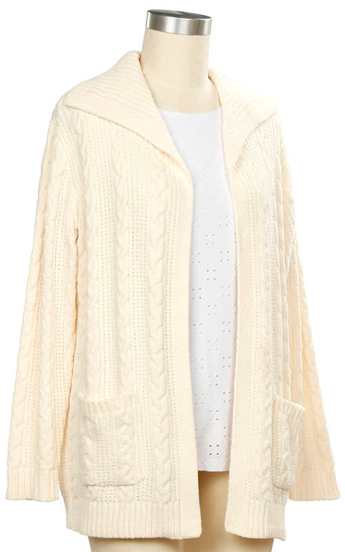 Soft, warm open front cardigan sweater in cream color