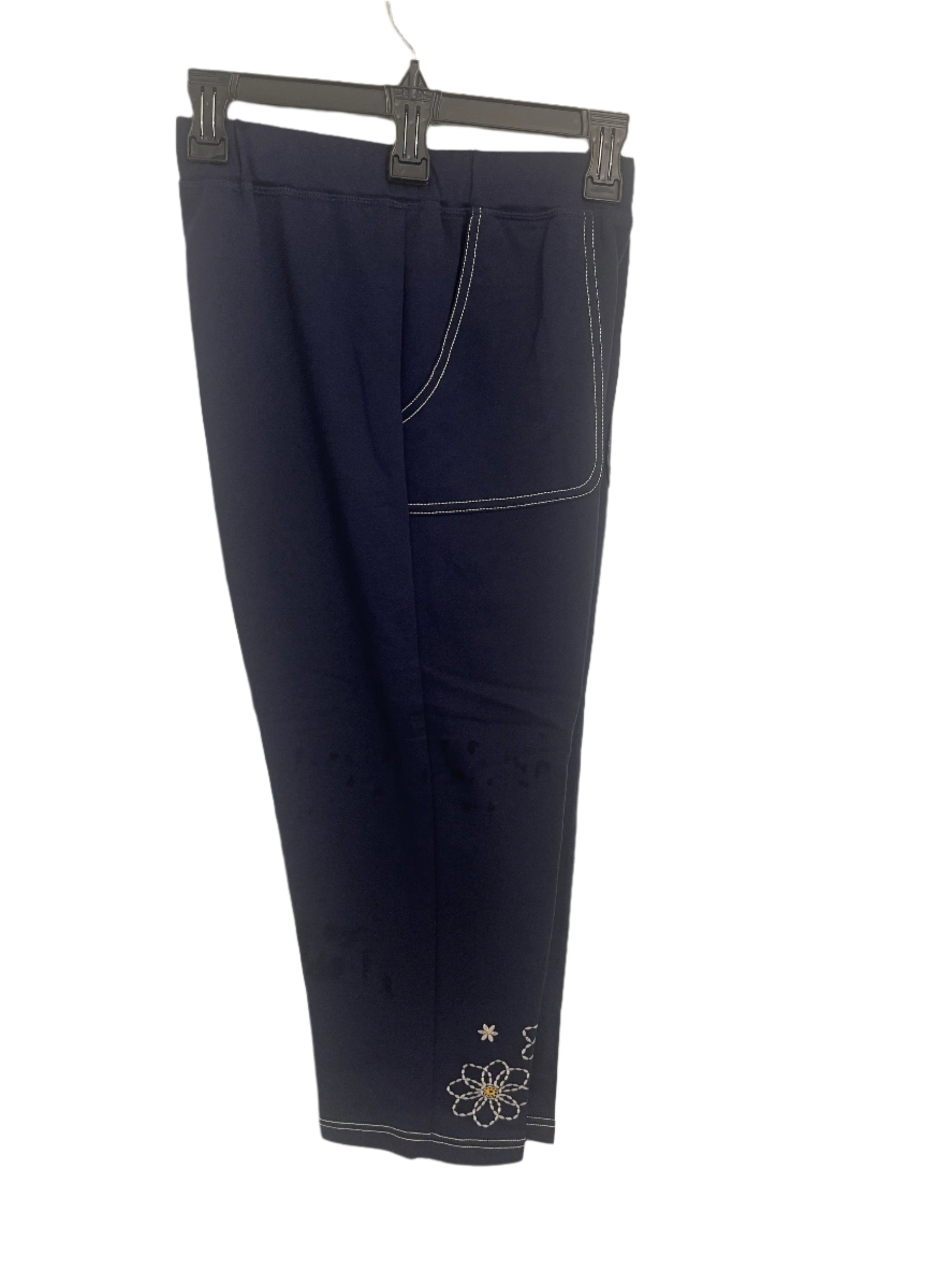 Classic Jersey Knit Petite Length Pants With Daisy Embroidery on cuff with deep pockets