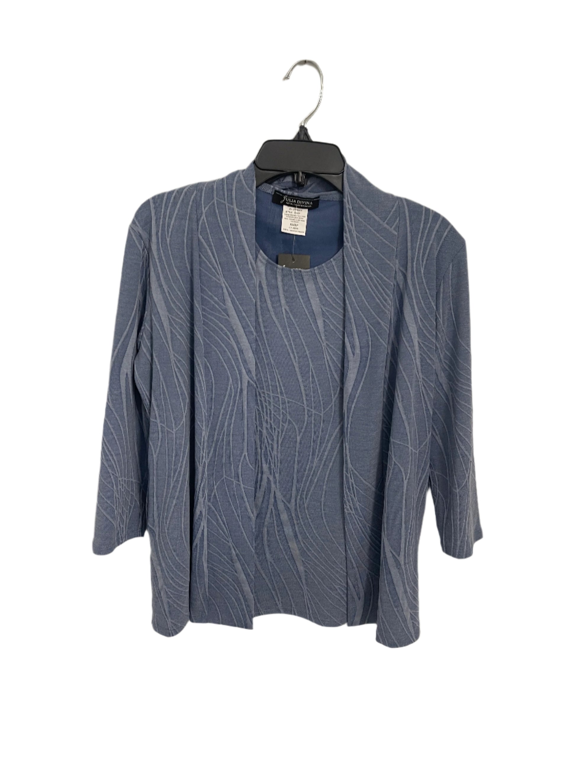 Light weight coverup in denim coloured swirl design has a matching shell. This set comes in PXS and PXXL.